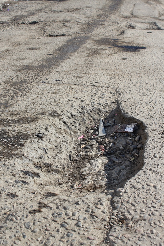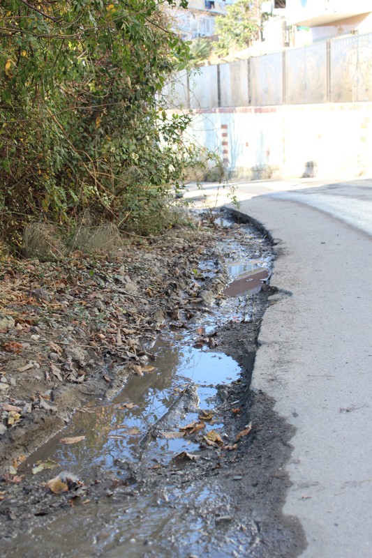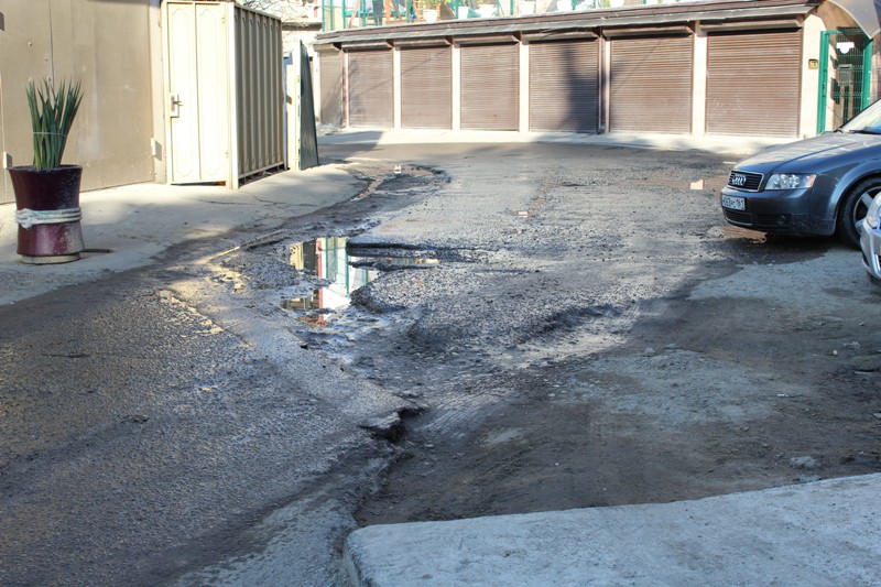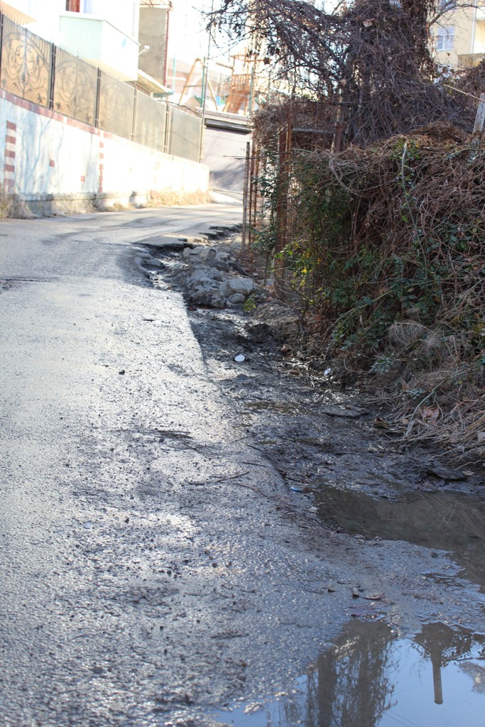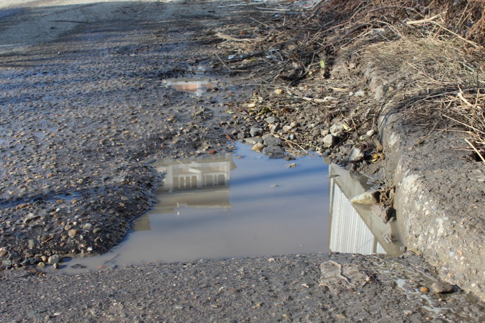Проблема №1: По улице Гранатная на 300-метровом отрезке в 3-х местах на дорогу с близлежащих участков и новостроек вытекает вода, вследствие чего дорожное полотно находится в «плачевном» состоянии. Неизвестно и происхождение этой воды, а также наличие в ней нечистот.