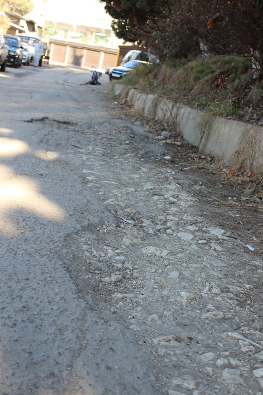 Проблема №2: По олимпийской программе в районе прокладывались новые электрические кабеля, а именно по ул. Гранатная от перекрестка до самого детского сада № 110. Дорогу перекопали вдоль и поперек, сверху присыпали щебенкой и на этом все закончилось. Прошедшие в сентябре ливни, сделали свое дело – щебень размыло.
