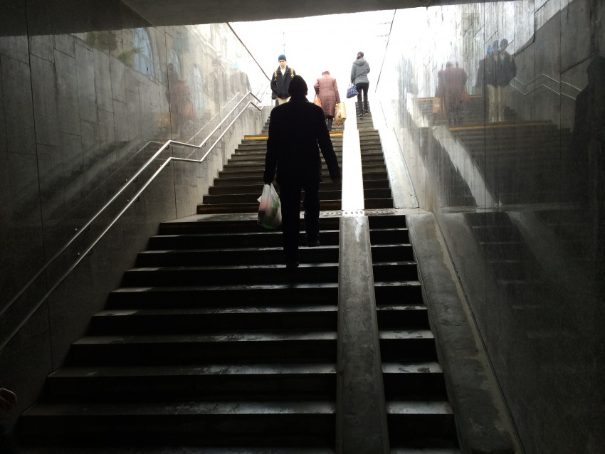 Смотрю на несознательных пешеходов, которые на глазах у двух гайцов переходят улицу, не пользуясь подземным переходом и ныряю в новый подземный переход, как сознательный житель олимпийского города. И «ныряю» в полном смысле этого слова.