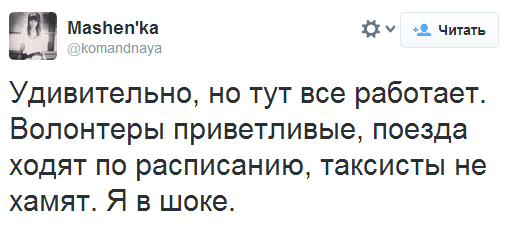 Про горепомощников: при строительстве олимпийских объектов было допущено много ошибок, многое можно было бы сделать по-другому. Но время и размах не сыграло на руку качеству. Мы можем многое по этому поводу сказать и будем правы. Но сегодня на кону честь нашего города и наше с вами достоинство. Я не понимаю горожан, выкладывающих в интернет олимпийские казусы и недочеты (сдвоенные унитазы, опечатки и неверный перевод надписей и многое другое). Еще в большей степени меня раздражает, что этим занимаются люди, задачами которых являются: сопровождение Олимпиады, создание благоприятного мнения у гостей города и страны! Волонтеры, всевозможные переводчики и сопроводители гостей с просторов нашей родины, пожалуйста, не позорьтесь сами и не выставляйте сочинцев дураками! Было бы интересно, как вы сработали бы в условиях АВРАЛА!