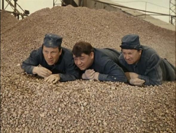 ГОЛОС ЗА КАДРОМ: — Доцент, щебенку мы ночью уже на Сочинском ЖБИ наковыряли. Когда на дело пойдем? Улицу рушить станем ?
