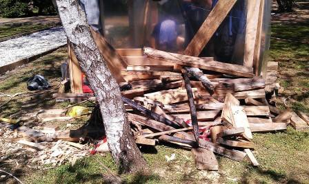 Тут же устроили лежбище лица без определённого места жительства… Как раз жечь костры у электрокабелей…