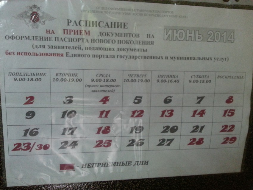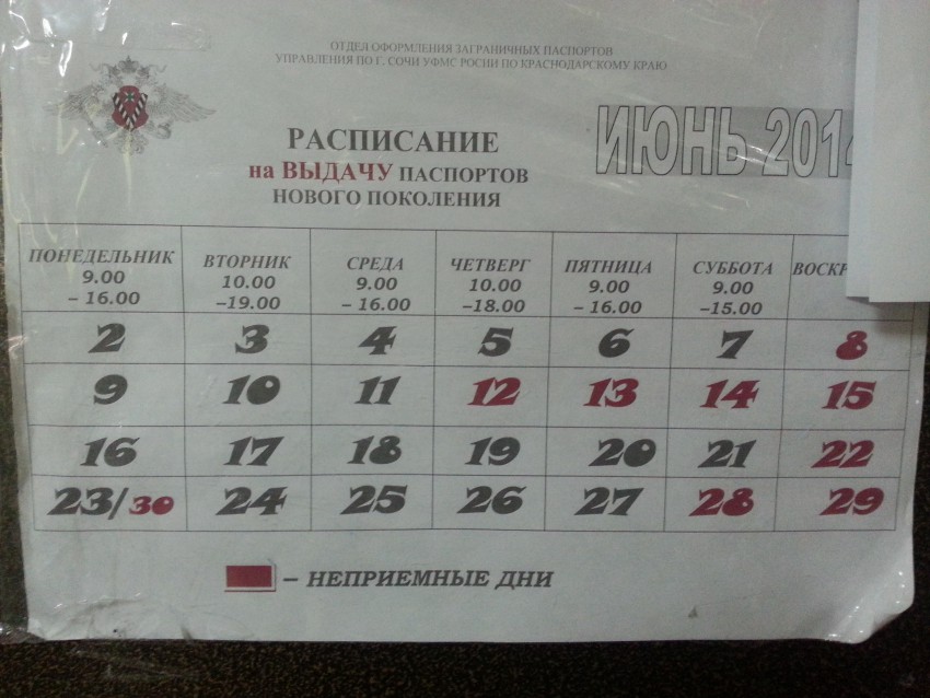 4 утра… После ночного дождя высовывать нос из теплой постели очень не хотелось… а тут еще Боцманидзе соскучился.… В отказывающем просыпаться мозге металась горошинкой мысль… куда то мне надо сегодня. Очередной мокрый поцелуй в нос довел горошинку до размеров снежного кома: Мне же за загранпаспортом! Проглотив бутерброд и объяснив собакевичу, что кормлю его завтраком не я, вызываю такси. На вопрос таксиста куда, напрочь забываю название конторы и решительно оправдав цвет волос, показываю — туда за загранпаспортом. Подискутировав с ним на тему — делать нечего в такую рань. приезжаю в 5-30 к искомому учреждению… И… ТА-ДАМ!!! Я уже в четвертом десятке… Разговорившись с собратьями по «счастливому» субботнему утру, выясняется, что мужчина в 3!!! ночи был уже десятым… Осмотрев объявление с расписанием работы, выяснилось, что к нам в Сочи за получением загранпаспорта приезжают из Туапсе… Внимание, вопрос: Как вообще 2 девушки умудряются успевать делать загранпаспорта практически всему побережью Краснодарского края? И есть ли шанс получения паспорта у тех, кому достался номер за 50…