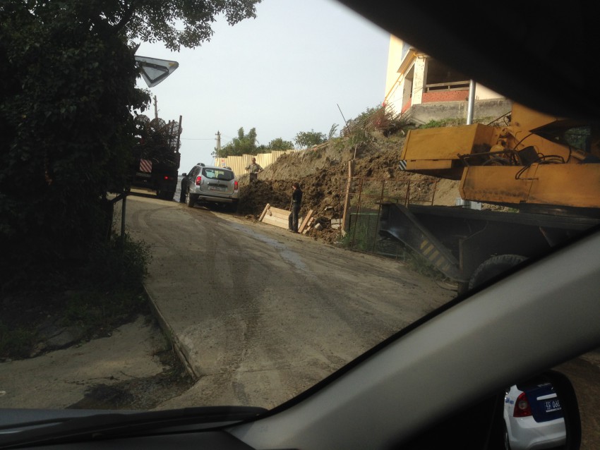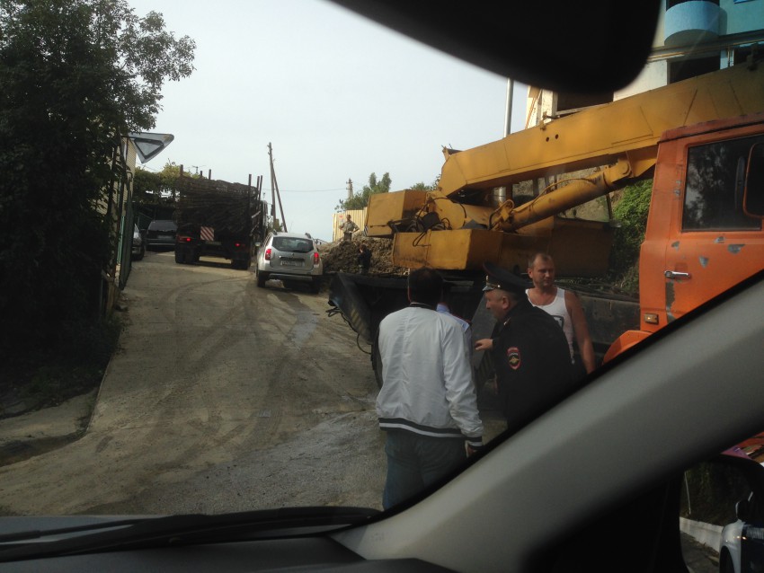 Сотрудники ГИБДД, как пчелы на мед, слетелись по грязным следам на объект. При производстве работ застройщик не предусмотрел мойку колес грузового транспорта и напоролся на то, за что так рьяно боролся. Раскатали грязь до самого поста на Мамайке.