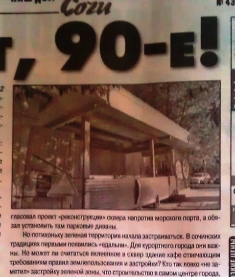 Об опубликованной в газете Наш дом — Сочи №43 (603) 13-19 ноября 2014 г. статье — " Привет, 90-Е!"