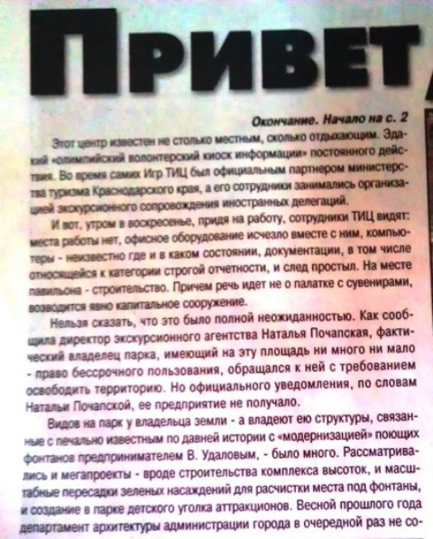 В топе Про жулика Удалова, глициниевую аллею и мэра… Лена-Yabeda цитирует ответ Пахомова, на заданный ею вопрос о судьбе сквера «Кооперативный»: