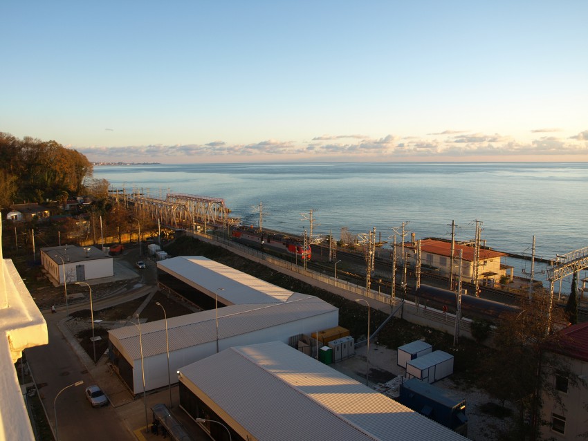 А это вид сверху на железнодорожные красоты. В кадр попала лишь треть нагороженных павильонов. Зачем столько делали — уже спрашивал. Забирайте, господа железнодорожники: продадите кому — нибудь. Вам явно деньги нужны… всегда. А нам — свободный доступ к морю верните, уже можно…
