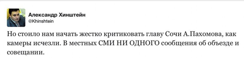 Максим, местные СМИ о таких фактах ставит в известность пресс-служба администрации Сочи. Не мне же вас учить о этом факте.