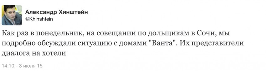 Думаю, что после этого заявления, местным чиновникам придется не сладко. Особенно принимая во внимание, что Хинштейн успешно решает проблемы дольщиков по стране в целом, вследствие чего кое-кто из чиновников лишились своих постов.