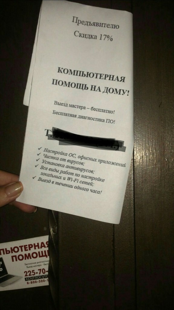 Здравствуйте, форумчане! Подскажите, кто-нибудь сталкивался с проблемой саморекламы? Дело в том, что на забор моего дома и не только моего — развешивают визитки фирмы, «Компьютерная помощь». На звонки отвечают операторы, находящиеся в Санкт-Петербурге, и оставляют мою заявку, но видимо не кому она так и не доходит…