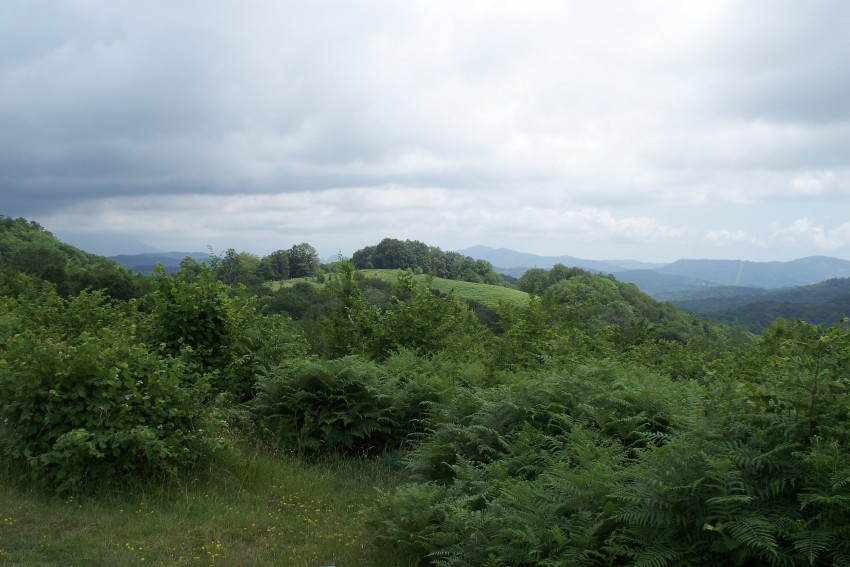Рассказал он мне, что из ста восьмидесяти га (Измайловка, Прогресс) сейчас возделывается около тридцати. Печально и ожидаемо — я видел немало чайных полей, заросших бурьяном. Были еще плантации фундука — пропали практически полностью. На одной из них, за пятиэтажками есть красивейшее плато — уже стоит несколько домов на месте вырубленного орешника. Вот таких: