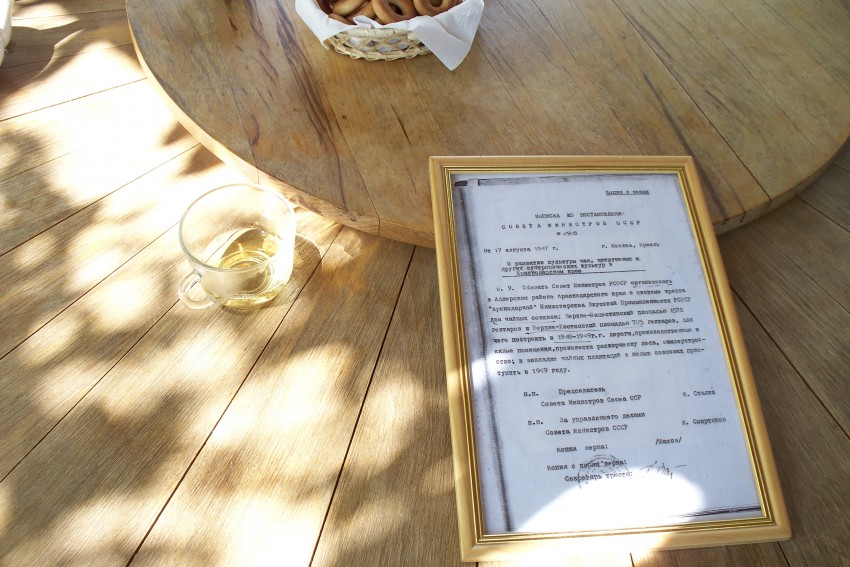 Но все оказалось сурово: тот дружелюбный некогда дядечка нынче не любит подобных расспросов, охраняющие его покой лица тоже не уполномочены давать подобную информацию: «коммерческая тайна, все на сайте».Хорошо, тогда попробуем поговорить с простыми людьми — тем более, что здесь село, обязанное своим появлением и развитием именно чайной отрасли. В свое время практически на самой вершине, поближе к плантациям — были выстроены три пятиэтажки для чаеводов, в поселке есть детский сад, школа(знаменита висением в ней на турнике бывшим президентом Медведевым)), свой водопровод из озера «Три ключа», котельная и неработающие с «девяностых» очистные. Аграрных туристов встретит запах сами знаете, чего — очистные располагались в самом начале Измайловки и сейчас огибаются двумя потоками нечистот.