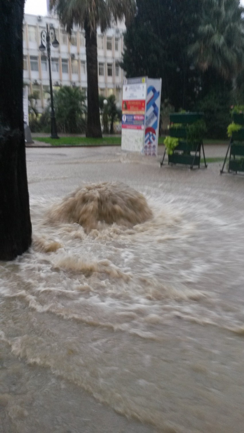 В очередной раз идет дождь, да сильный дождь, не стихийное бедствие… все-таки в субтропиках живем! и центр города в очередной раз ПЛАВАЕТ!