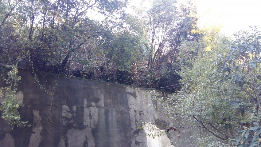 Судя по всему, водоотвода просто не существует. Вся вода стекает с горы большим водопадом, неся с собой все то, что есть на горе. Сама опорная стена пока еще целая. Пока еще!!! Потому что долго она не протянет. Уже пошли трещины.