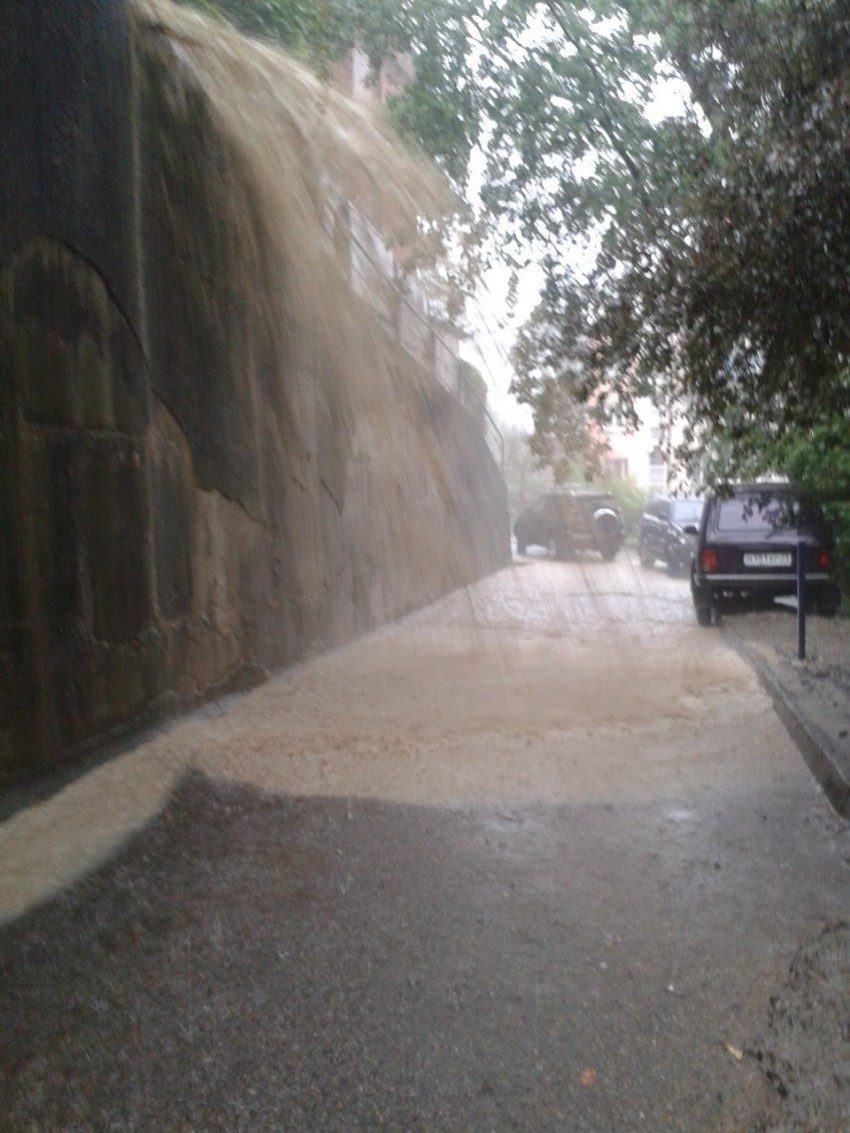 Но хотелось бы сказать еще вот что. Пока не было новых высотных домов на нашей горе, не было таких потоков и водопадов. До постройки высоток площадь впитывания была больше (больше ровно на две высотки), соответственно, до нас доходило меньше воды, так как бОльшая ее часть впитывалась в землю еще на горе. Так же, до постройки высоток, деревьев было больше (ровно на две высотки больше было деревьев). Их корневые системы держали грунт. Соответственно, чем больше деревьев, тем лучше держится грунт. А он подвижен был даже в далеком 90 году… Это я еще по детству помню. И вот что становится интересно — какой такой умник дал разрешение на строительство огромных высотных домой на такой местности? Где даже ступеньки развалились…
