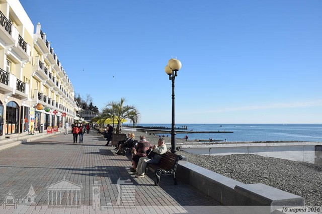 Пока бои местечкового назначения кипят на подступах к набережной и дальше аквапарка «Маяк» не продвинулись. Наталья Захарова с сайта «АрхитектураСочи» ещё 10 марта прогулялась по значительной части набережной и предложила таким лодырям как я взглянуть на свои фото со спокойными, ровными комментариями.