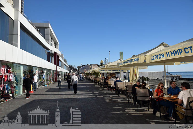 Узнав намерения главы города, мы отправились прогуляться по главному морскому променаду Сочи, зафиксировать его нынешнее состояние и посмотреть, что же именно там настроено на сегодняшний день, чтобы было потом с чем сравнивать результат усилий сочинского градоначальника.