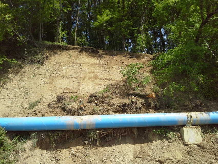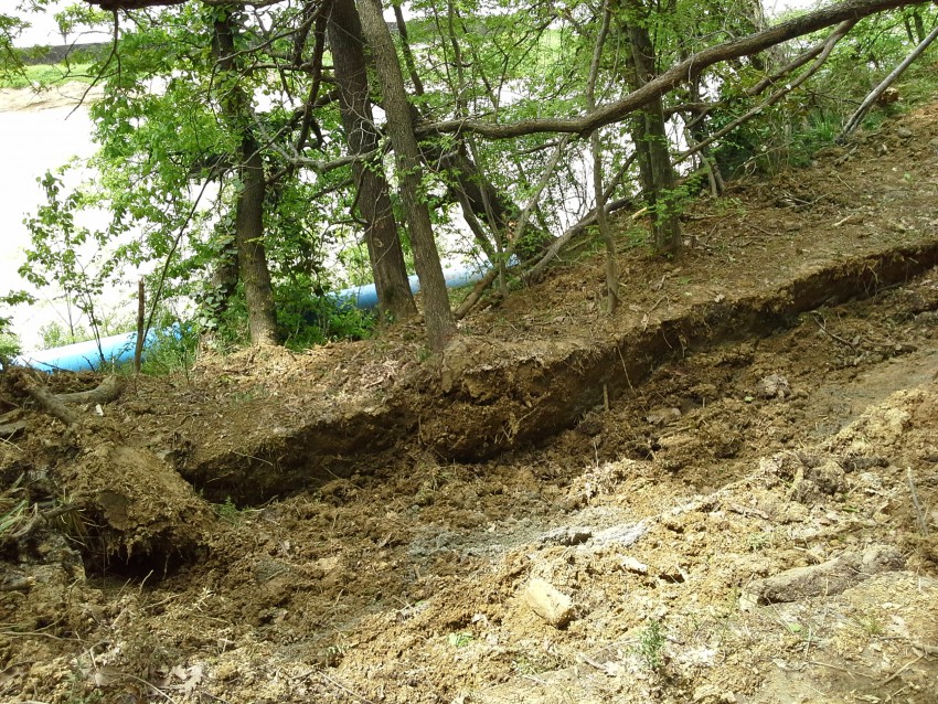 Сегодня, 24 апреля, решила посмотреть на место разрытия. Впечатление не утешительное. Весь склон ниже траншеи, а в некоторых местах и выше, скорее всего съедет вниз на магистральный водовод. Смотрите сами. Фото много. Но зато можно надзорным органам не пачкать свою обувь.)))
