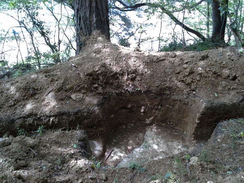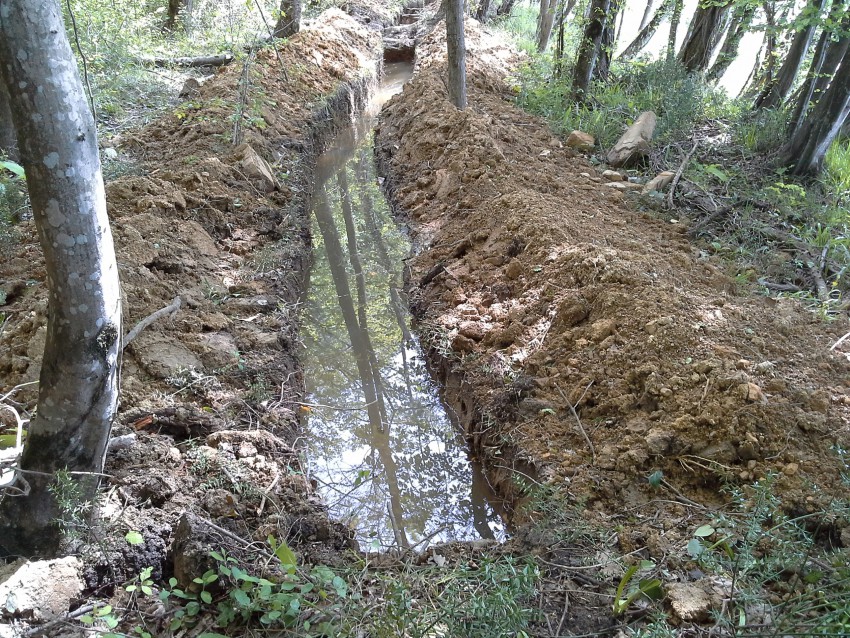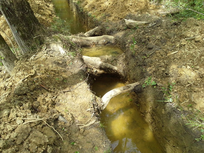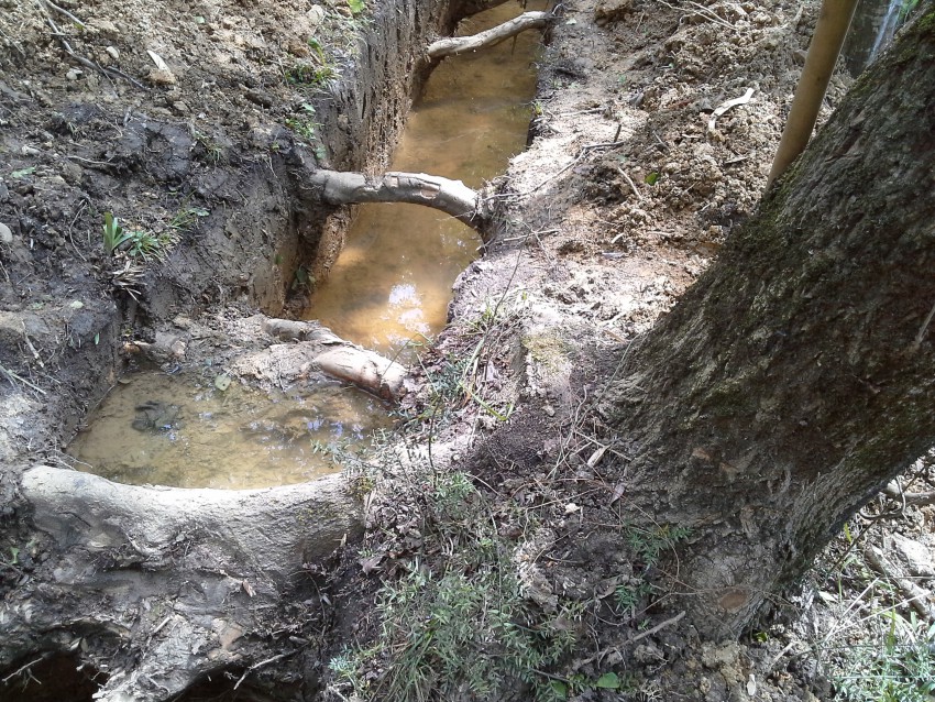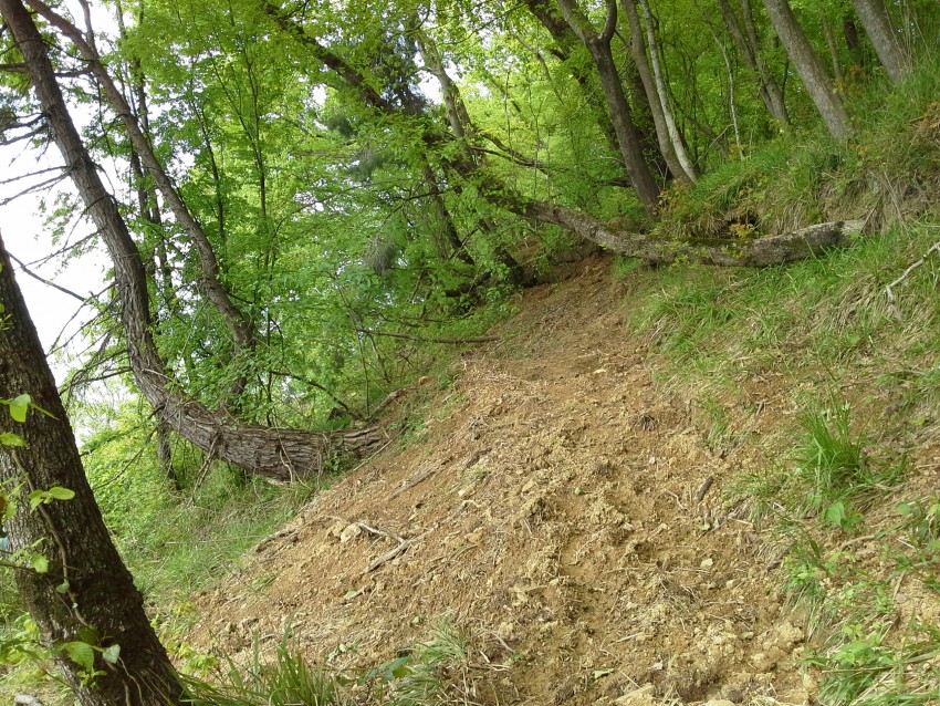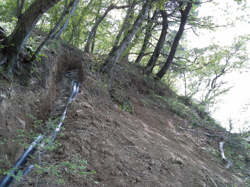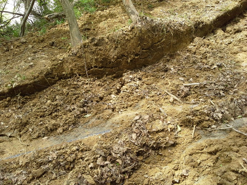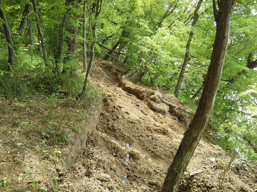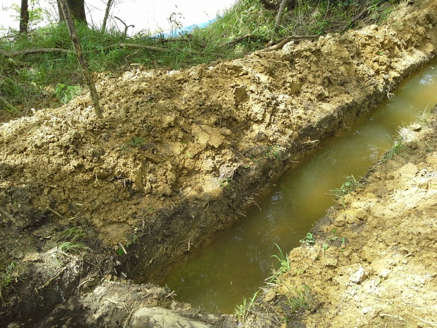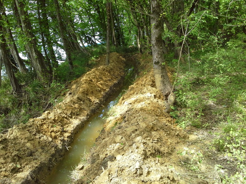 Революционность решения на фото видим невооруженным глазом: вдоль склонов сверху выкопать глубокие канавы и подождать дождика. Природа сама все сделает раз и навсегда! Мы ж такое неоднократно наблюдали!