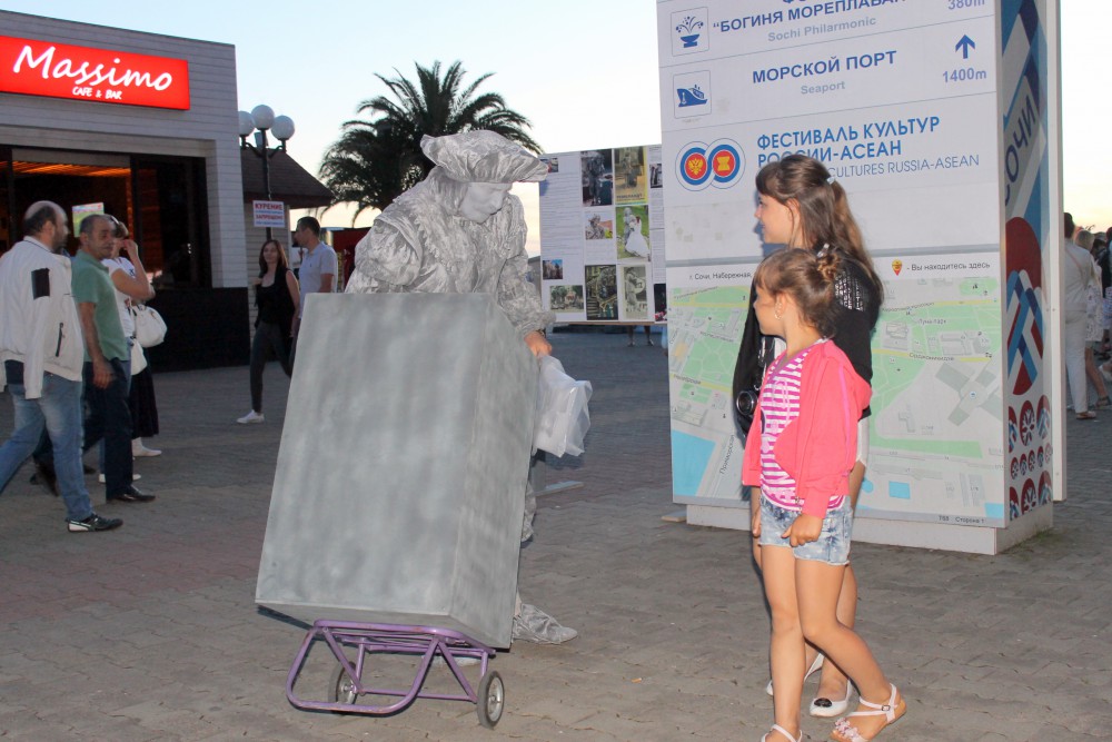 и вот тогда, проходя по чистой набережной, вдыхая запах моря (а не подгоревших шашлыков), слушая шелест волн (а не гибрид михайлова, лепса и кого-то там еще), наслаждаясь вечерним закатом вы сможете сказать: паренек, статуя, конечно, ничего так, но ты мне вид на закат портишь…
