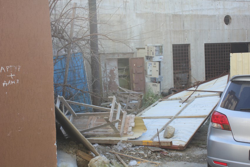 На стройке постоянно лазают дети, легкие строительные заборы ломаются от порыва ветра.