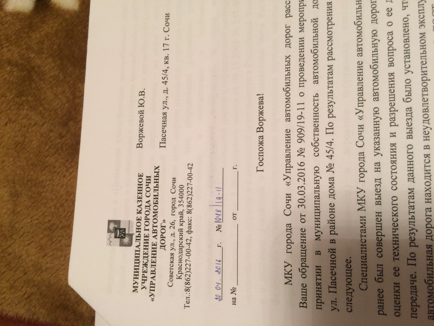 Доброго времени суток! Хочу поделиться проблемой целого района и попросить совета — что делать? А проблема вот в чем: в 2015 году в октябре месяце после сильного ливня по ул Пасечная 45/4 произошёл обвал дороги. Понаехали МЧС, телевидение, наша управляющая компания — посмотрели, поснимали, уехали и все. Состояние дороги только ухудшается, т.к. подмывается дождями и скоро рухнет еще раз, но только на этот раз уже рухнет вместе со столбами электрическими, а 5 пятиэтажек, 3 частных дома и 1 девятиэтажка останутся без подъездного пути, т. к. это единственный путь к домам, в случае беды ни скорая, ни пожарная машина не подъедет. Вот и живем в " ожидании чуда".