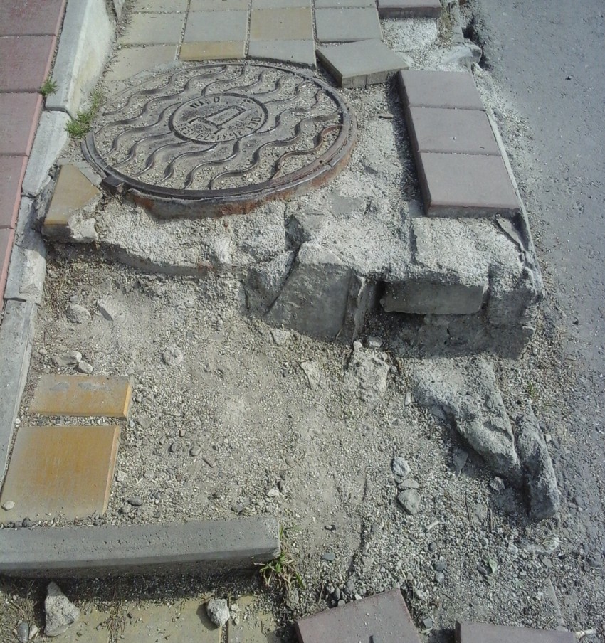 2. Тротуар с частично отсутствующей плиткой (выше дома по ул. Бытха 53 и ниже, в сторону ярмарки-привоза):