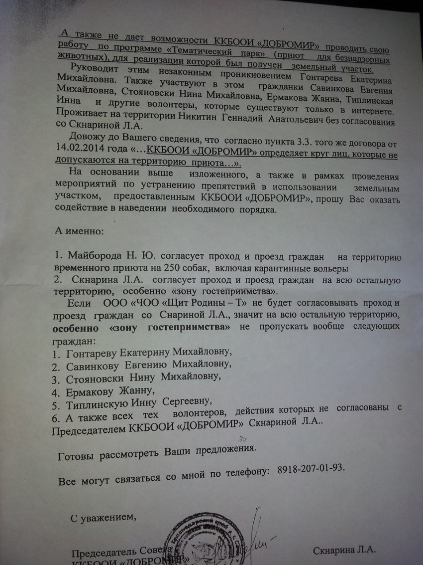Самое интересное, что ей же составлен список лиц, которых нельзя пропускать в приюты! В этом списке работники, организаторы, волонтеры приюта «БИМ»!