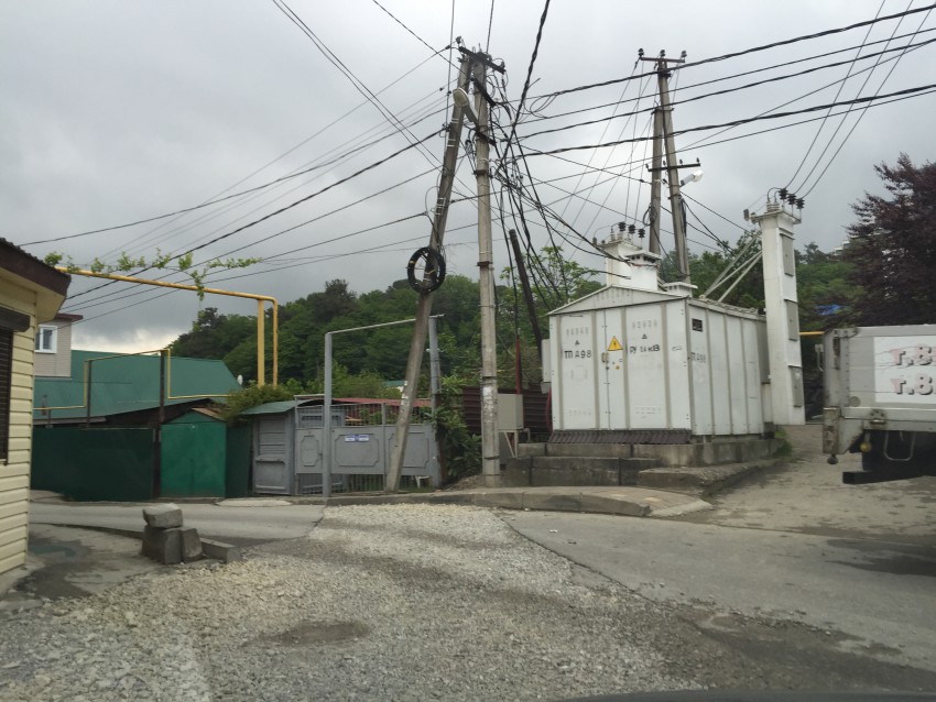 Ну и последний так сказать штрих и поедем в Дагомыс… Вся эта когорта домов, как вы думаете, куда подключена в смысле канализации? Своих очистных на Мамайке сроду не было, перед Олимпиадой по программе сделали не пойми как канализацию по Ландышевой и Целинной. Есть три напорных станции, одна из них находится на улице Волжской. Старенький одноэтажный неприметный домик перекачивает отходы в Дагомыс, по огромной трубе (800мм) которая идёт по одному из самых активных Мамайских оползневых склонов. Оборудование у этой станции — старое, понятно, что все эти дома будут обслуживаться через неё.