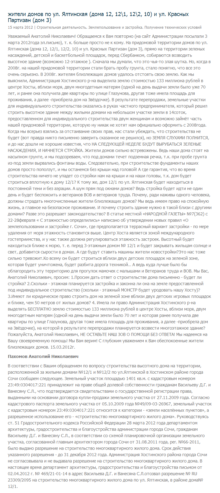 белый список прям создали. Анатолий Николаевич, а хотите я Вам подскажу, что надо делать, чтобы не было вот таких самовольных незаконных домов? надо сказать ответственным лицам чтобы они начали ВЫДАВАТЬ разрешения на строительство бесплатно :]