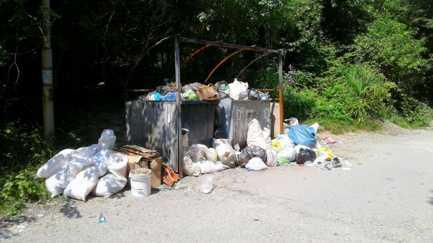 Локальная свалка мусора, возникшая вследствие несвоевременного вывоза отходов и незаконного сброса (микрорайон Бытха)