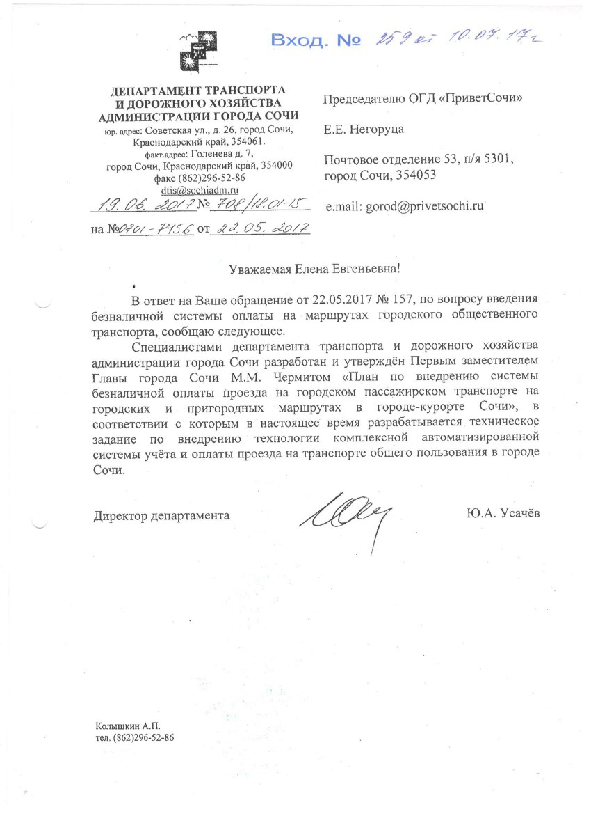 В разговоре не могла не вспомнить про знаменитый уже на весь большой Сочи автобус № 14. По которому мы обращались от имени жителей Соболевки и в администрацию, и в прокуратуру города…