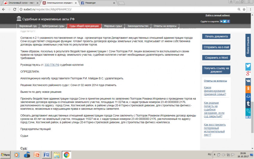 Я так понял, что это его матушка — судья по Хостинскому району, которая всегда рада удовлетворить иски застройщиков о смене градостроительной зоны, скажем, с Ж-2 на Ж-6 («Белый дворец», к примеру)