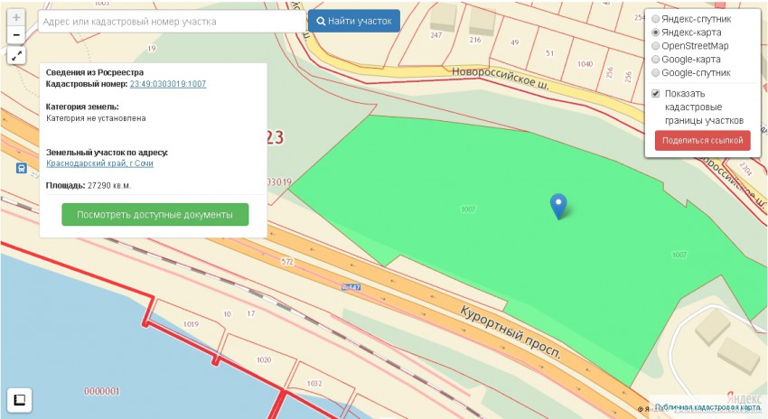 И каким-то образом, для участка, находящегося правее, с кадастровым номером 23:49:0303019:1007 площадью 27290 кв.м категория земель вообще не установлена. Не успели ещё продать? Так мы и будем вместо туристических объектов показа получать «Замки Приведений»?