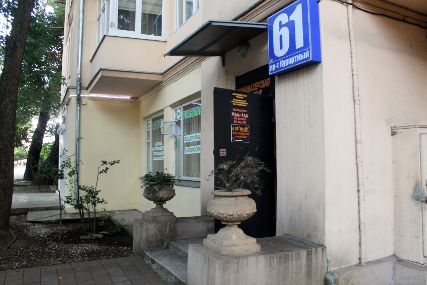 Этот дом Курортный проспект 61 у трассы, проезжая мимо остановки «Театральная» виден отлично всем. Давайте встретимся, покажу. Аптека всегда была закрыта.