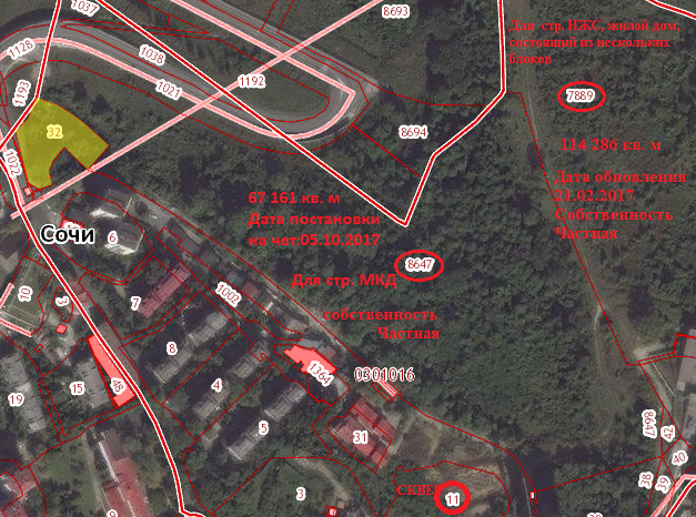 Итак, по сведениям «Атласа функциональных зон Генерального плана городского округа город Сочи», под цифровыми обозначениями №№1493, 7413, 7414 и 7415, располагаются участки северного склона Бытхи: