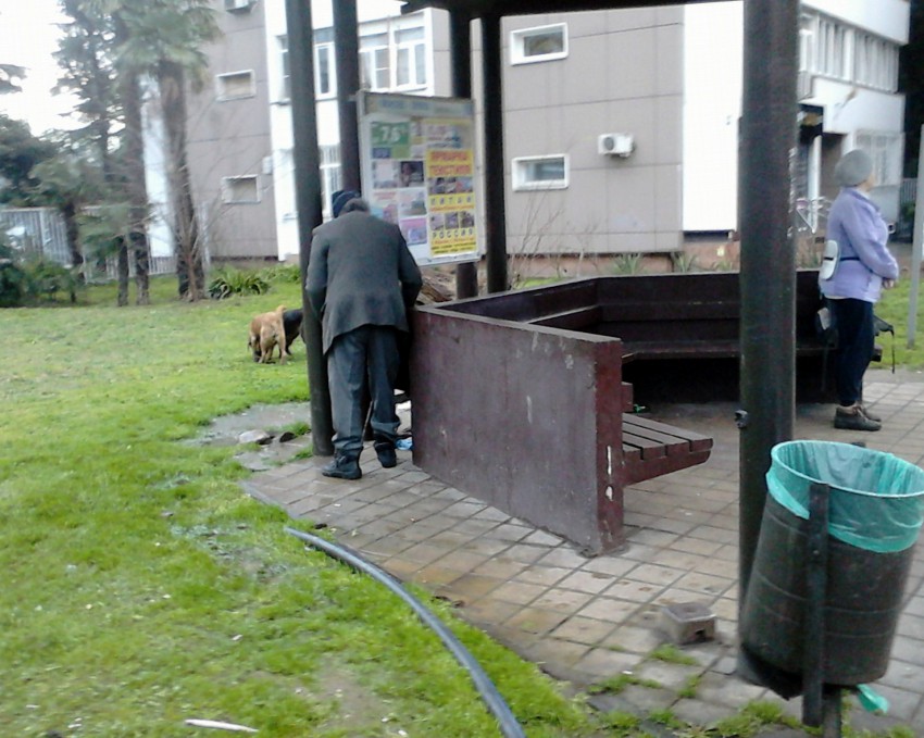 Четвёртого марта на остановке «Хлебозавод» по улице Гагарина группа Сочинского Туристского Клуба собиралась в очередной поход в горы. За остановкой живёт бомж. Мужчина лет семидесяти пяти. По возвращении из похода позвонил по телефону 8 (964) 949-22-72 в благотворительную организацию «Теплота наших рук», где в списке добрых дел была услуга, помощь людям попавшим в трудную жизненную ситуацию. Обещали забрать с улицы. Прошло полтора месяца, а бомж и ныне там. Для статьи «В Сочи „трудных“ людей возвращают к нормальной жизни» номера телефона не нашёл.