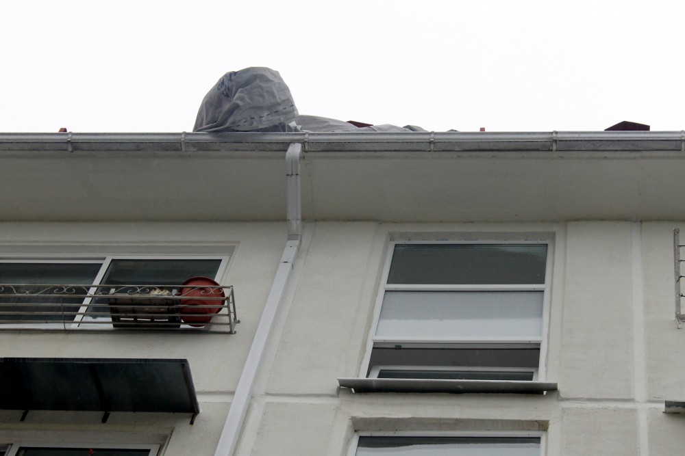 Жители дома ходили в домоуправление. Двое строителей после того как узнали, что фотографирую для публикации в интернете через два часа приехали на машине с инструментами и расчисти крышу для ремонта.