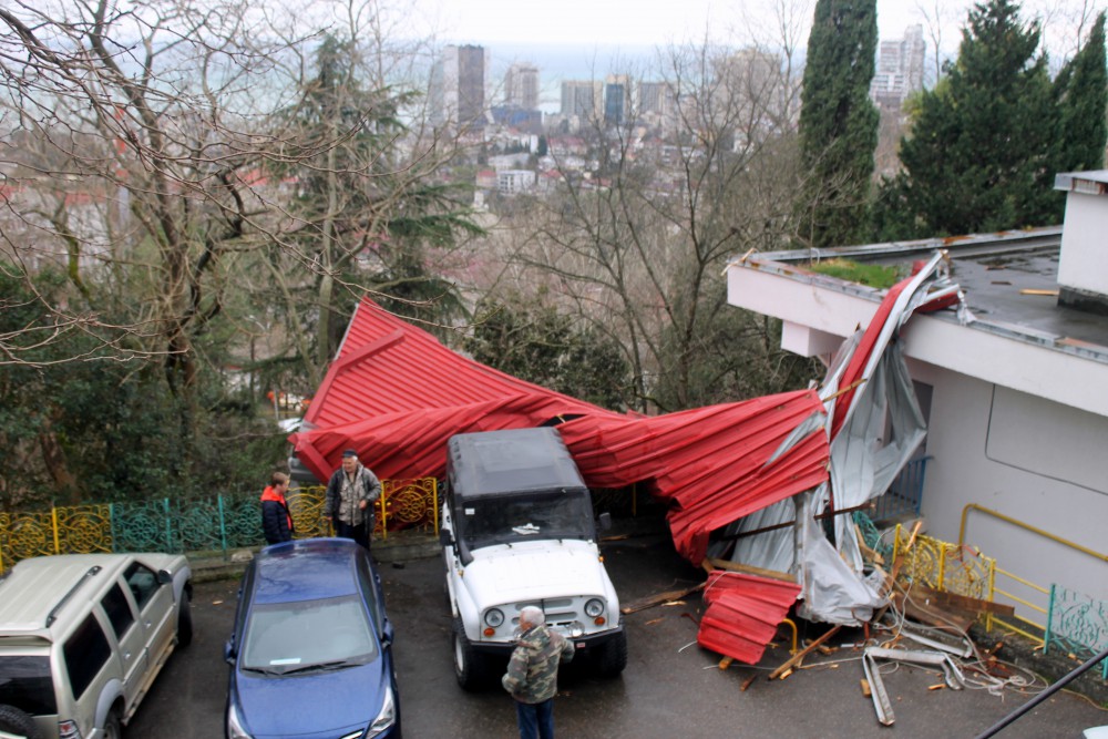 Как пишет Макс Портал 15 января в городе упало шесть деревьев. Была повреждена кровля на двухэтажном шестнадцатиквартирном жилом доме по улице Армавирской в Дагомысе, Лазаревский район. Утром 16 января по Новороссийскому шоссе в Хостинском районе произошел сход грязи — каменной массы на дорогу, потянувшей за собой три дерева.