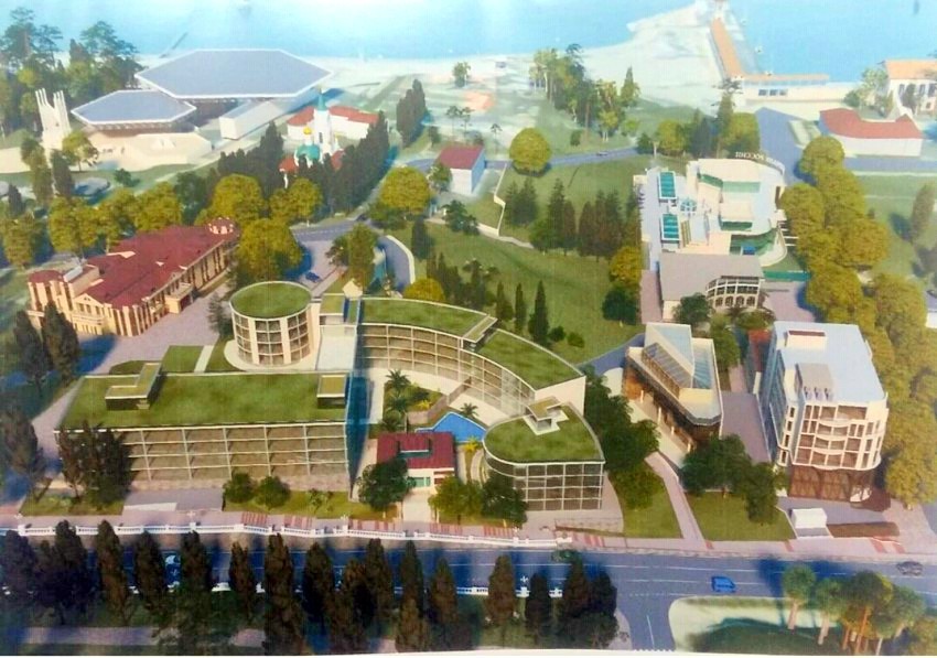 так называемый Олимпийский университет (крестобразный) на месте сан. «Мориса Тореза» с уничтожением прекрасного дендропара;