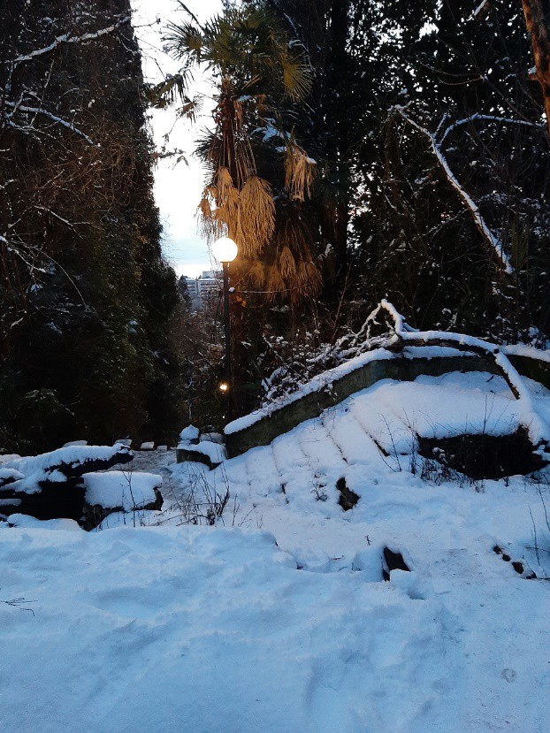 Ну, по лестнице нашей и в добрые-то времена года ходить не сильно удобно, а по зиме да в дождь тем более, особенно трудно пожилым людям. Фонари, которые здесь на фото, перед новым годом сделал будущий застройщик. До этого освещения лет 20 не было, потому что электрические сети сгнили. И все остальные коммуникации тоже.