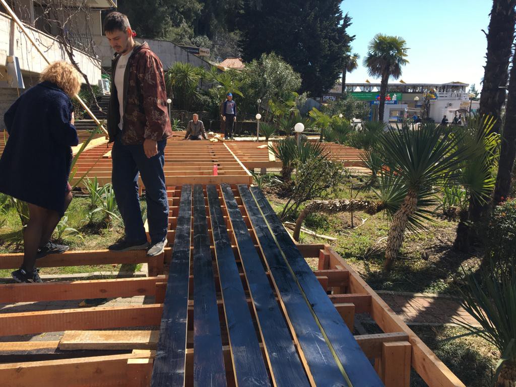 Т.е. нам пытаются обманом «подсластить» горькую пилюлю от оставленных вдоль всего пляжа многоуровневых сплошных ларьков под зеленой крышей с второго ряда гостиниц на прибрежном склоне