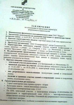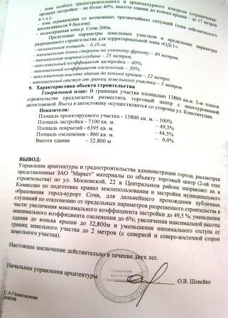 которое не вписывается в площадку и не соответствует «Правилам землепользования и застройки города-курорта Сочи» (ПЗЗ).