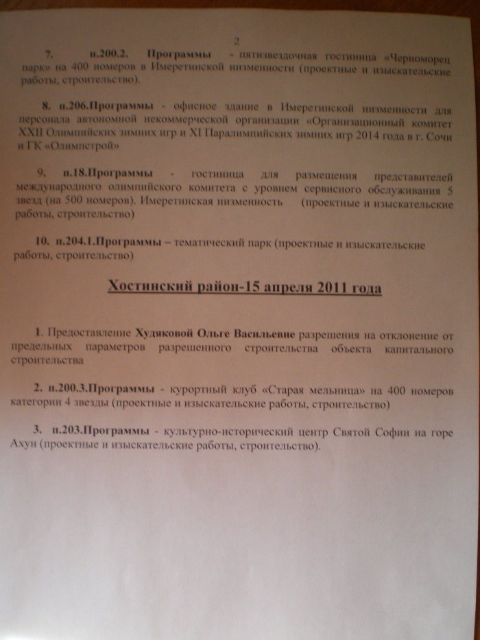 2. п.198 Программы строительства Олимпийских объектов — четырехзвездочная гостиница «Приморская» на 350 номеров и 10 аппартаментов в составе санаторно-курортного комплекса