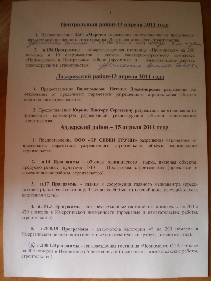 Ниже привожу вопросы, выносимые на публичные слушания в Лазаревке, Адлере и Хосте: