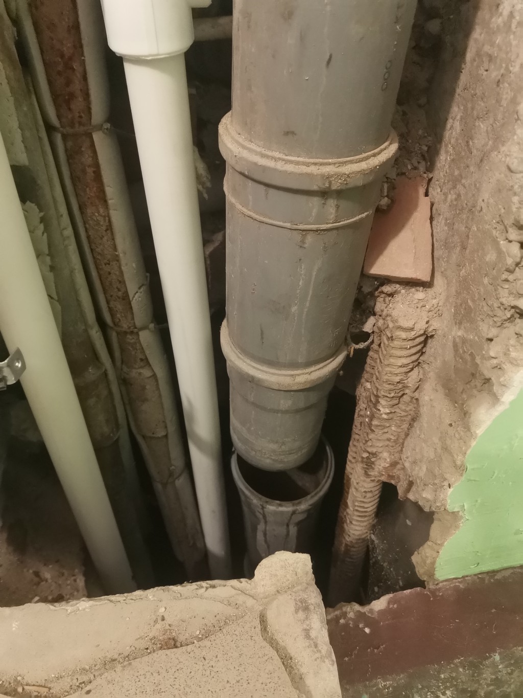 Сегодня на первом этаже разошлась труба, стена пока ещё открыта и мы сразу заметили это