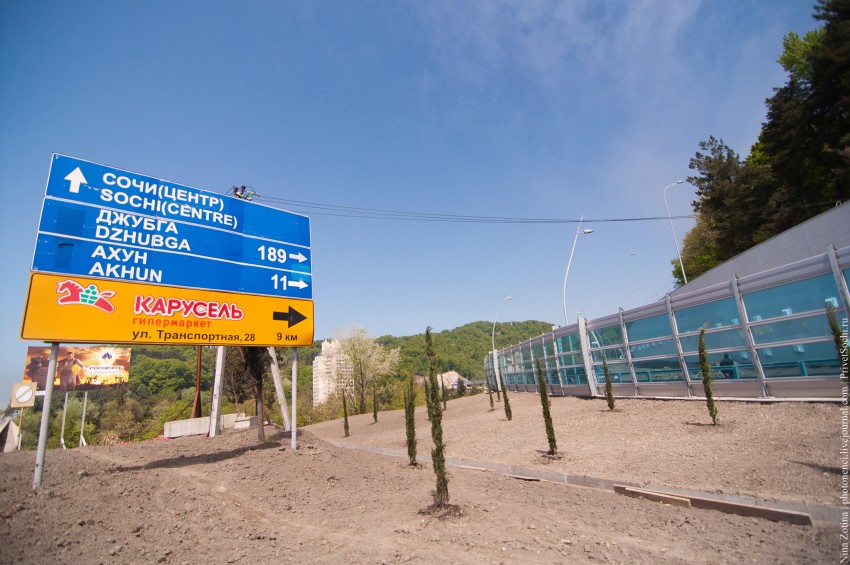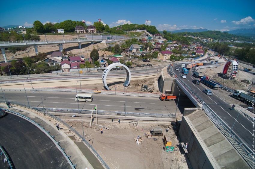 И заключительным этапом осмотра вводных Олимпийских дорожных объектов стала транспортная развязка «Адлерское кольцо», которое полностью планируется сдать в эксплуатацию в июне 2012 года, но сегодня в торжественной обстановке развязка была открыта, теперь по ней может ездить каждый желающий.