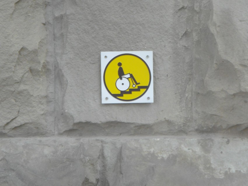 Это я про магазины… Сфотографировала кнопочку для инвалидов в одном из магазинов… Мне вот интересно, инвалид должен встать с коляски, подняться по ступенькам, чтобы позвонить, а потом в колясочку спуститься???