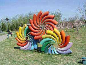 Если пройти по ссылке, то вторая картинка — проект установки скульптуры в олимпийском парке Пекина (в итоге установили — без всяких «поднимающих» опор — на площади перед главной городской библиотекой Шанхая) .