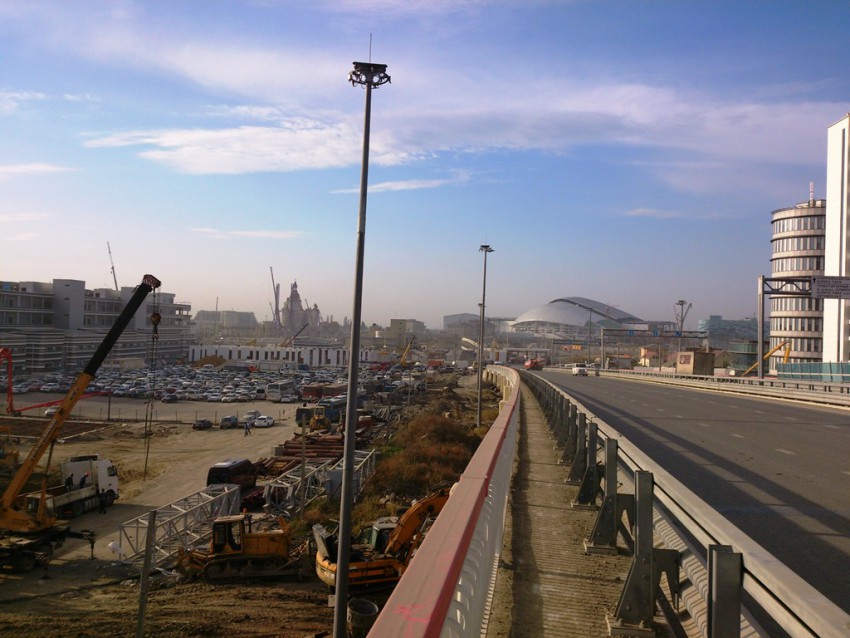 Как я уже говорил недостроенная станция еше не готова к приему пассажиров, но электрички уже ходят.Самое интересное началось дальше, во первых я около получаса бегал по станции, пытаясь найти выход, никаких указателей куда идти конечно же нету, хорошо сотрудница станции подошла и спросила чем помочь и объяснила где выход, правда я так ничего и не понял))) Наконец по прошествии получаса выход был найден, вышел через центральный вход и тут зона боевых действий — окопы, траншеи, котлованы, куда идти дальше опять не понятно.